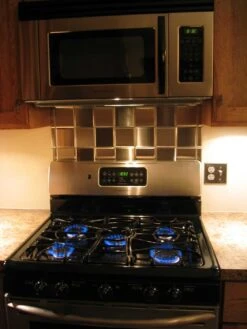 Package Qty: 9 Tiles (1 Square Foot)4″ x 4″ Brushed Stainless Steel Kitchen Backsplash TileMaterial: 22ga 304 Stainless Steel #4 Brushed FinishTile Dimensions: 4″ x 4″ x 1/4″Tile Substrate: MDFInstallation: Glue (sold separately) (PL Premium Construction Adhesive recommended)Tile is stamped with an Arrow that indicates the grain direction underneath the plastic protective coating that must be removed after the installation.Tile do not need to be but can be grouted with sandless grout to seal interfaces.Made in the USA!4″ x 4″ Brushed Stainless Steel Kitchen Back Splash Tile (9 pack) $22.95/SF