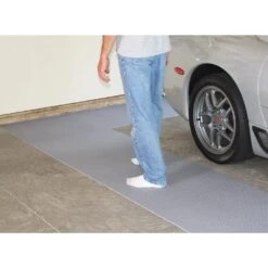 Keep the mess out of your home with easy care Armor All Garage Floor Runners. The carpet like surface of these mats pulls dirt and grass from the soles of boots and shoes and absorbs moisture. We are all guilty of the occasional stocking footed trip through the garage to take out the trash or grab something from the fridge. Keep your socks clean and dry by creating a pathway with our runners. Made of easy to cut, non-fraying material it’s easy to customize these mats for your specific needs. Made of non-woven polyester with PVC waterproof backing. Does not contain phthalates, lead, or heavy metals. Care Instructions: Vacuum, then use mild detergent with hose or power washer. Hang dry. Do not bleach.