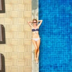 - Multi-purpose Usage: This interlocking wood tiles can cover the surface of cement, concrete and wooden boards. It is quite great for indoor use such as bathrooms, balconies and kitchens, as well as outdoor places such as pools, decks and gardens.