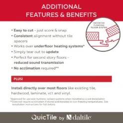 QuicTile by Daltile 12 in. x 24 in. porcelain floor tile in Enchanting Marble is tile reinvented. With the patented floating floor system, you can install real porcelain tile in one day. It takes just three easy steps – lay down underlayment, click the tiles together, and grout and go. It’s quick, it’s easy, and it’s beautiful. The Enchanting Marble tile is a classic white and gray marble look that embodies luxury and gives any room a refined look. QuicTile offers maximum durability; it’s waterproof, stain-proof, dentproof and scratch-resistant. Use this marble look in a bathroom or entryway to bring classic elegance to your home.