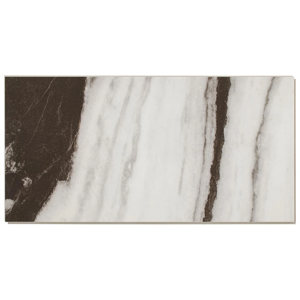 QuicTile by Daltile 12 in. x 24 in. porcelain floor tile in polished Panda Marble is tile reinvented. With the patented floating floor system, you can install real porcelain tile in one day. It takes just 3-easy steps – lay down underlayment, click the tiles together, and grout and go. It’s quick, it’s easy, and it’s beautiful. The polished Panda Marble tile is a bold and luxurious marble look giving any room a modern update. QuicTile offers maximum durability; it’s waterproof, stain-proof, dentproof and scratch-resistant. Use this marble look in a bathroom or entryway to create a beautiful and eye-catching space.