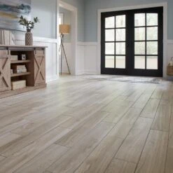 Refresh your space with the Regent Grove Ash Gray 6 in. x 36 in. porcelain floor and wall tile by Daltile. This soft gray authentic wood look creates modern charm in your space. Use it in your kitchen, living room or entryway to create a timeless look. As beautiful as it is durable, this porcelain tile is waterproof, stainproof, dentproof, scratch-resistant.