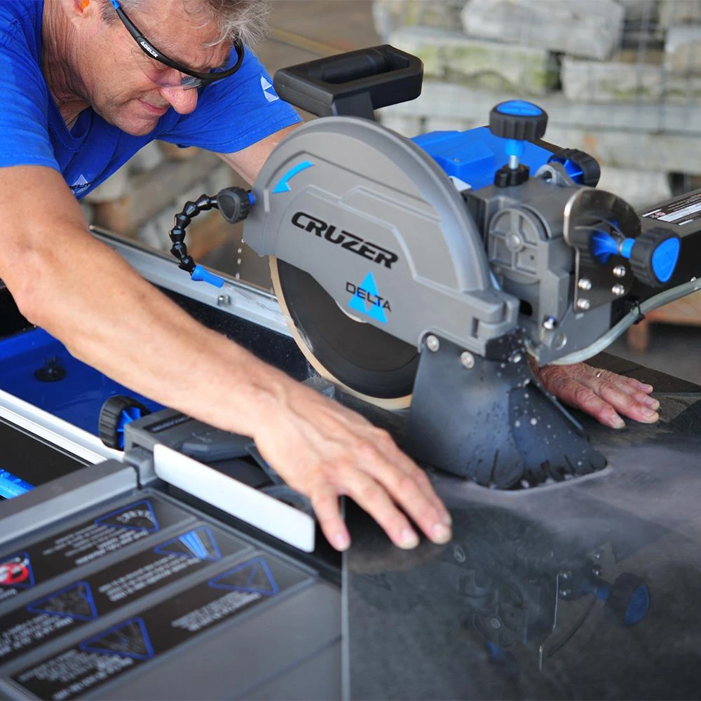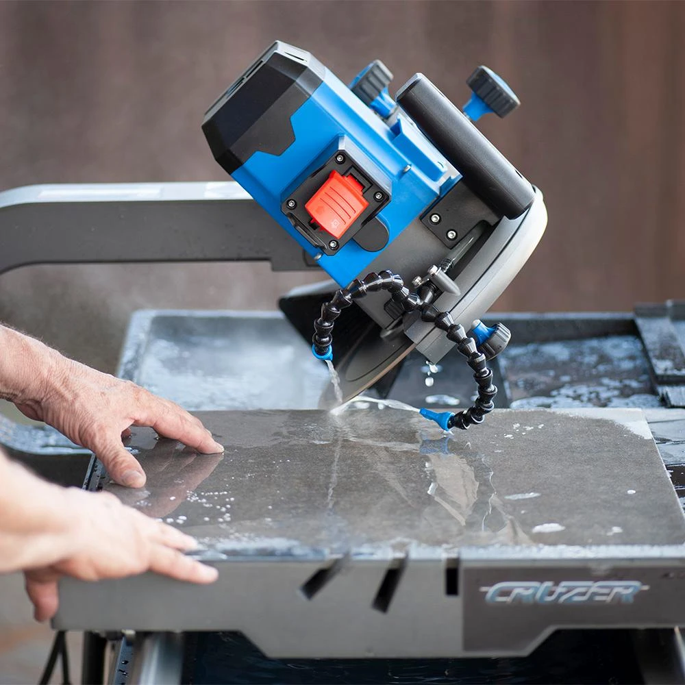 - Dual water nozzles can be adjusted for optimal water placement on the blade – minimizing messy over-spray and keeping the blade cool for optimal cutting performance