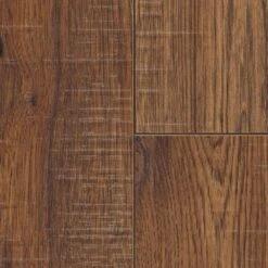 - TrafficMASTER Distressed Brown Hickory Glueless Laminate Flooring