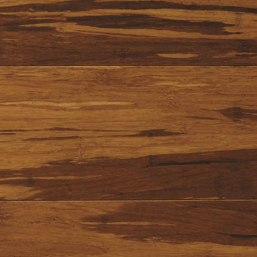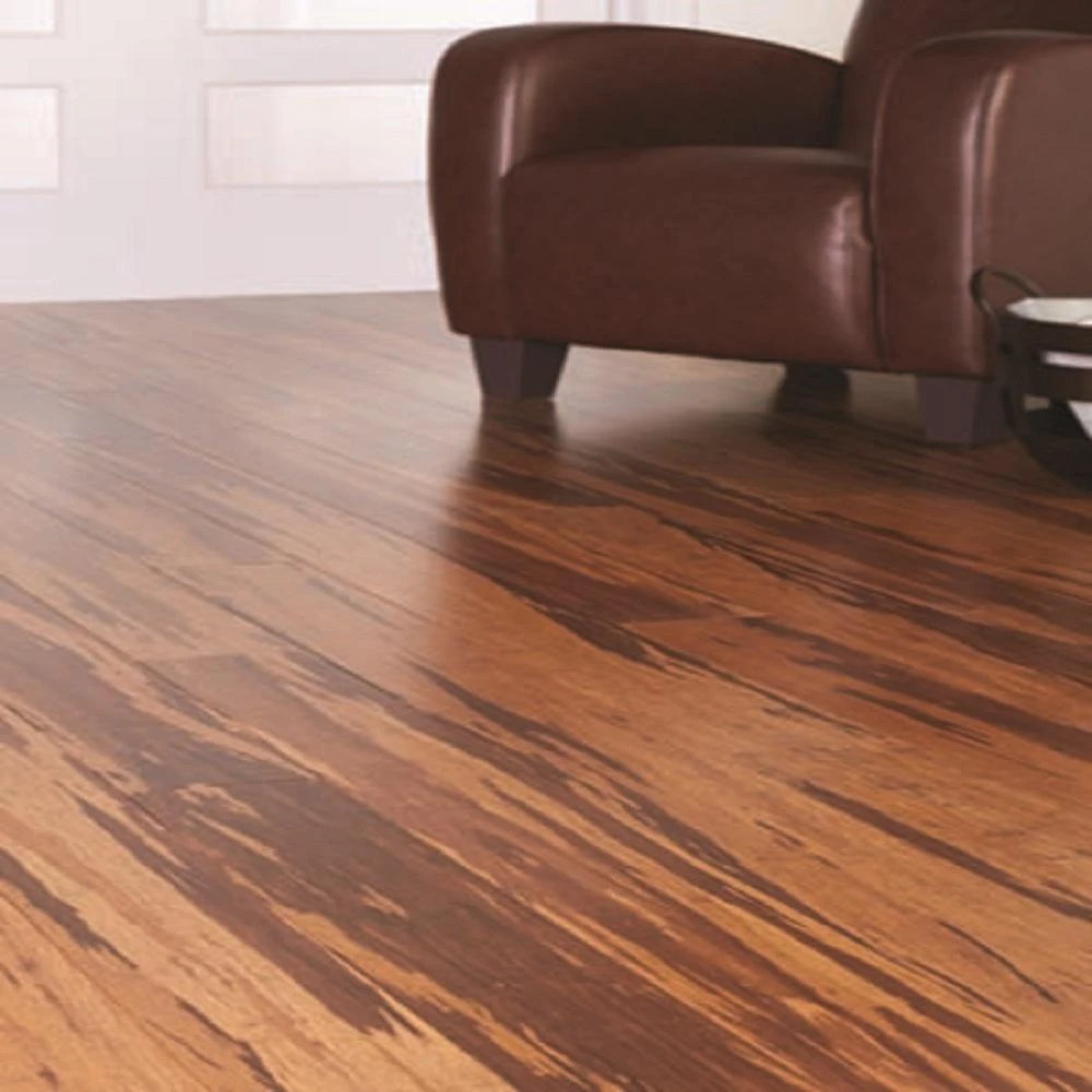 Enrich your home with the beauty of this Home Decorators Collection 3/8 in. bamboo flooring. This HDF engineered, strand-woven flooring with a medium gloss adds an authentic wood look to your residential space. The home should have a consistent room temperature of between 65 and 75 degrees F and relative humidity of between 40 and 55 for the best results. Fashioned with prefinished natural Tigerstripe color, a protective 11-layer aluminum oxide finish preserves the look of this durable bamboo flooring. It has a Janka wood hardness and dent-resistance rating of 4,000. Install the beveled-edged planks above grade or one grade with an easy, economical glueless installation. Use glue down or floating to install over multiple subfloors. One case covers 25.75 sq. ft.