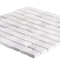 Carrara White 11-3/4 in. x 11-3/4 in. Marble Mosaic Tile adds a touch of luxe to your bathroom or kitchen. This natural stone mosaic features mini marble squares in a honed finish adding appeal to a classic neutral. Combine with natural stone field tiles to create impressive installations. Recommended for kitchens, backsplashes, showers, accent walls, tub surrounds and vanities. For best installation results, use white polymer-modified thinset and sanded grout. A penetrating sealer is also recommended before grouting.