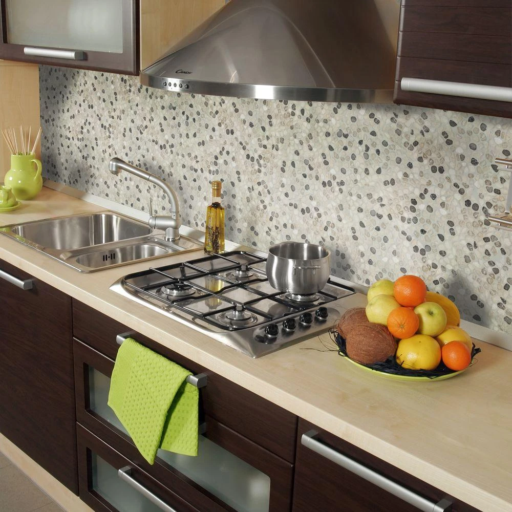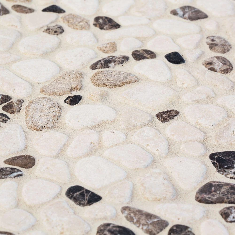Bring the outdoors in or leave the natural beauty of River Rock Mosaics outdoors to add unique detail to any bathroom, kitchen, hearth surround and cabana. Add rustic detail to kitchen backsplashes, tub and shower surrounds, pool and spa water edges, pillars and accent walls. Mesh mounted River Rock mosaic tile.