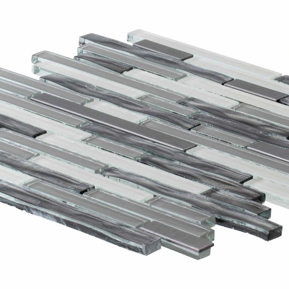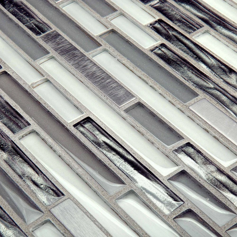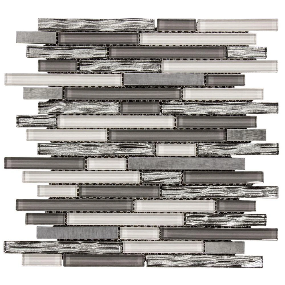 Use Waves of Grey 11-1/2 in. x 11-7/8 in. Glass and Metal Mosaic Tile to add dramatic style to your bathroom or kitchen. The mosaic features a combination of glass and metal pieces in an array of gray shades on a mesh-mounted sheet. Combine with field tiles or other mosaics to create impressive installations. Recommended for kitchens, backsplashes, showers, accent walls, tub surrounds and vanities. For best installation results, use white polymer-modified thinset and non-sanded grout.