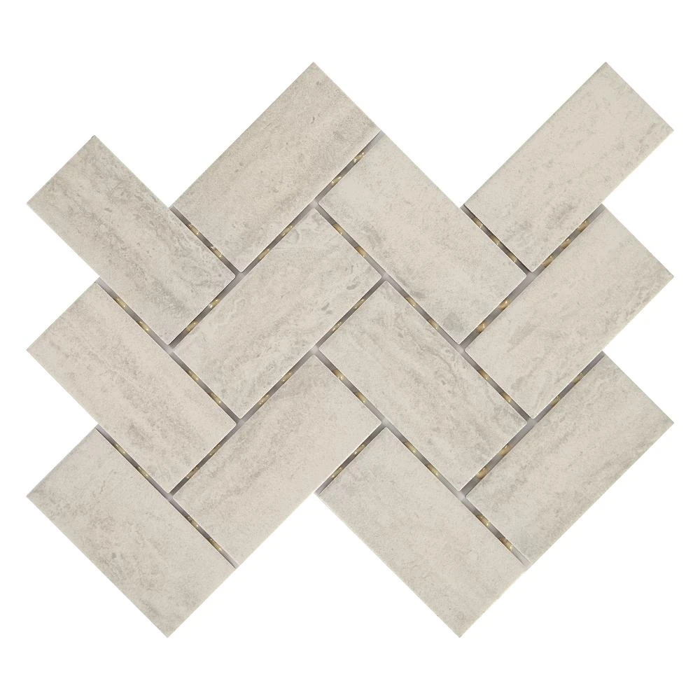 Add an accent wall or create a dynamic insert to a tile wall with this 12 in. x 14 in. herringbone mosaic tile from the Daltile Stonehollow collection. The eye catching tones and beautiful finish work well with a variety of styles and colors. This waterproof, scratch-resistant, and stain proof mosaic is perfect for both floors and walls. Pair it with coordinating Stonehollow Mist 12 in. x 24 in. porcelain floor and wall tile for a complete look.