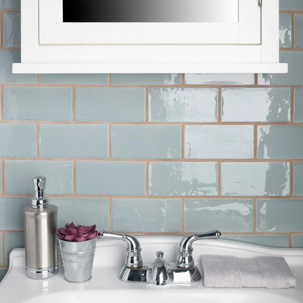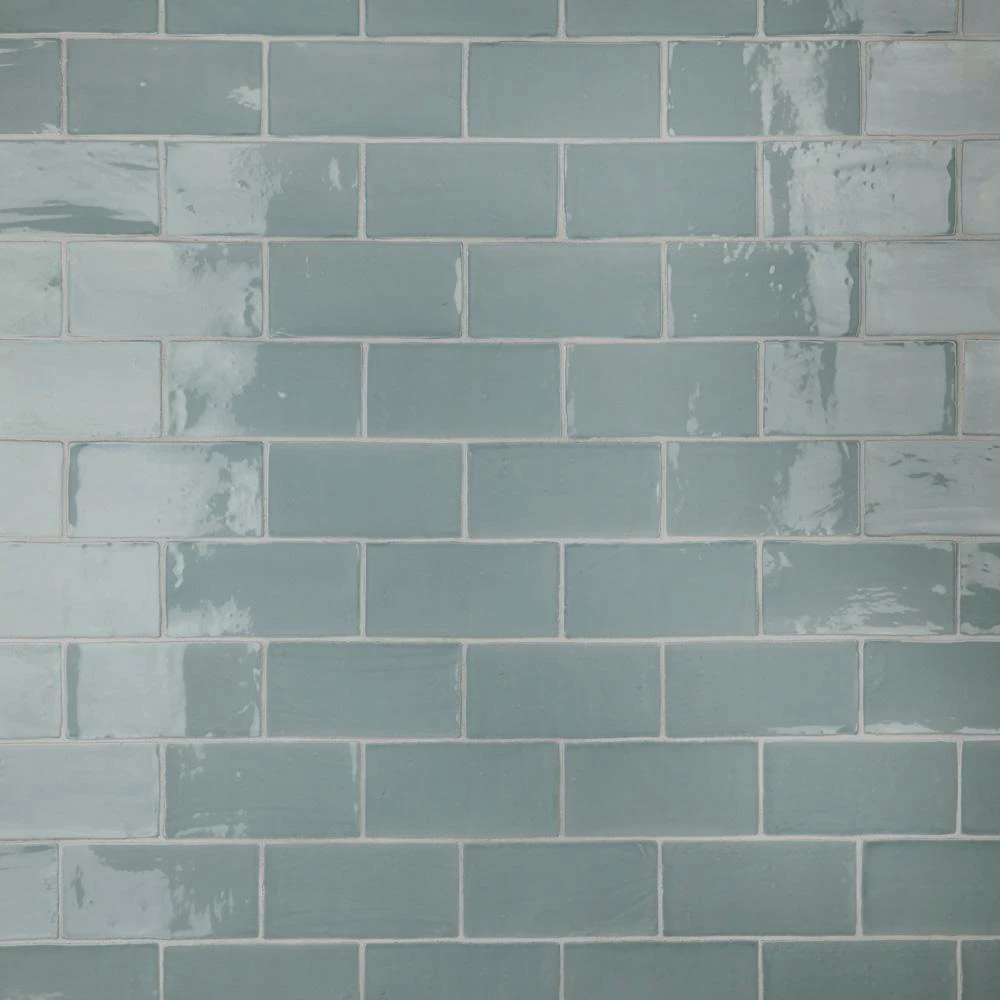 The Merola Tile Chester Acqua 3 in. x 6 in. Ceramic Wall Subway Tile has a unique handmade look. The glossy aqua glaze recalls a watercolor finish and accents natural variations in the surface of each piece. This versatile look is great for any wall and the soft color creates a soothing atmosphere in any space.