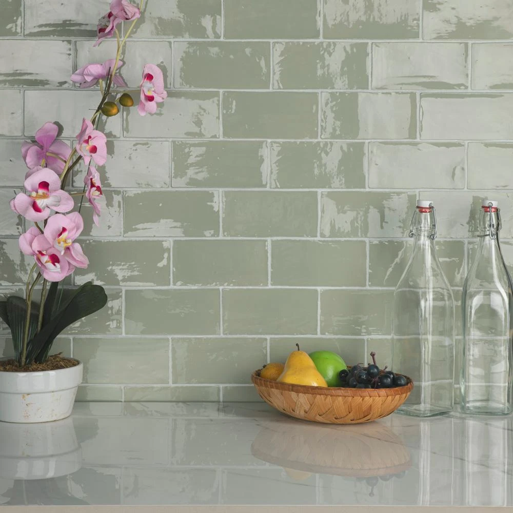 The Merola Tile Chester Sage 3 in. x 6 in. Ceramic Wall Subway Tile has a unique handmade look. The glossy light sage green glaze recalls a watercolor finish and accents natural variations in the surface of each piece. This versatile look is great for any wall and the soft color creates a soothing atmosphere in any space. Pair this tile with many of our other products in the Chester series for a high style look.