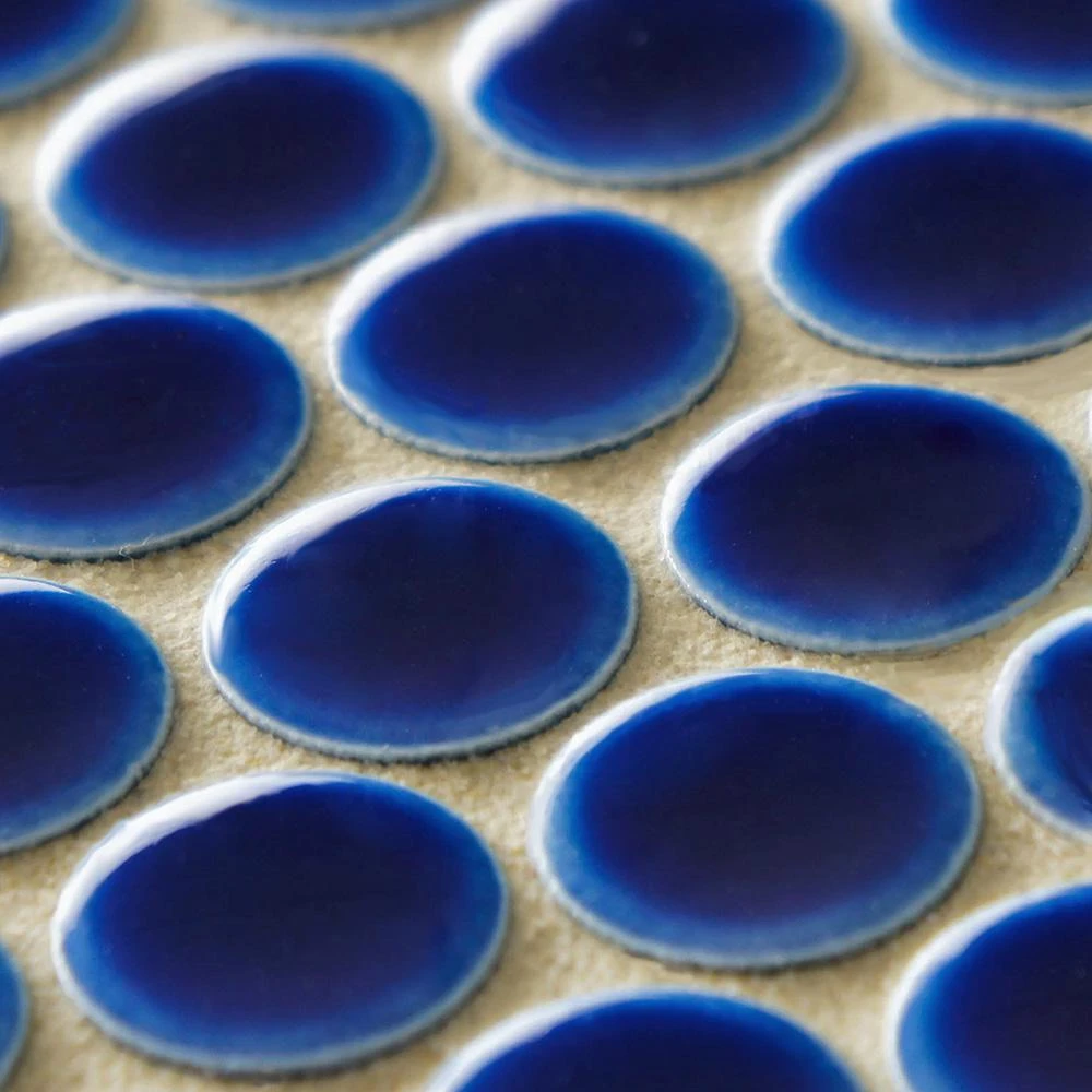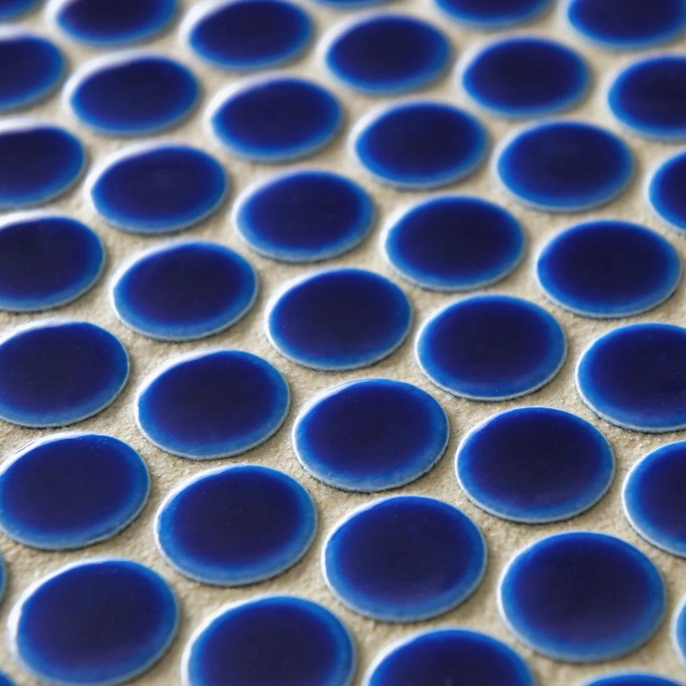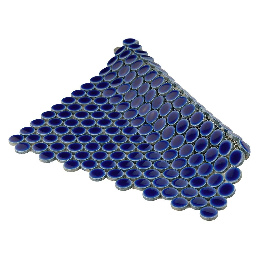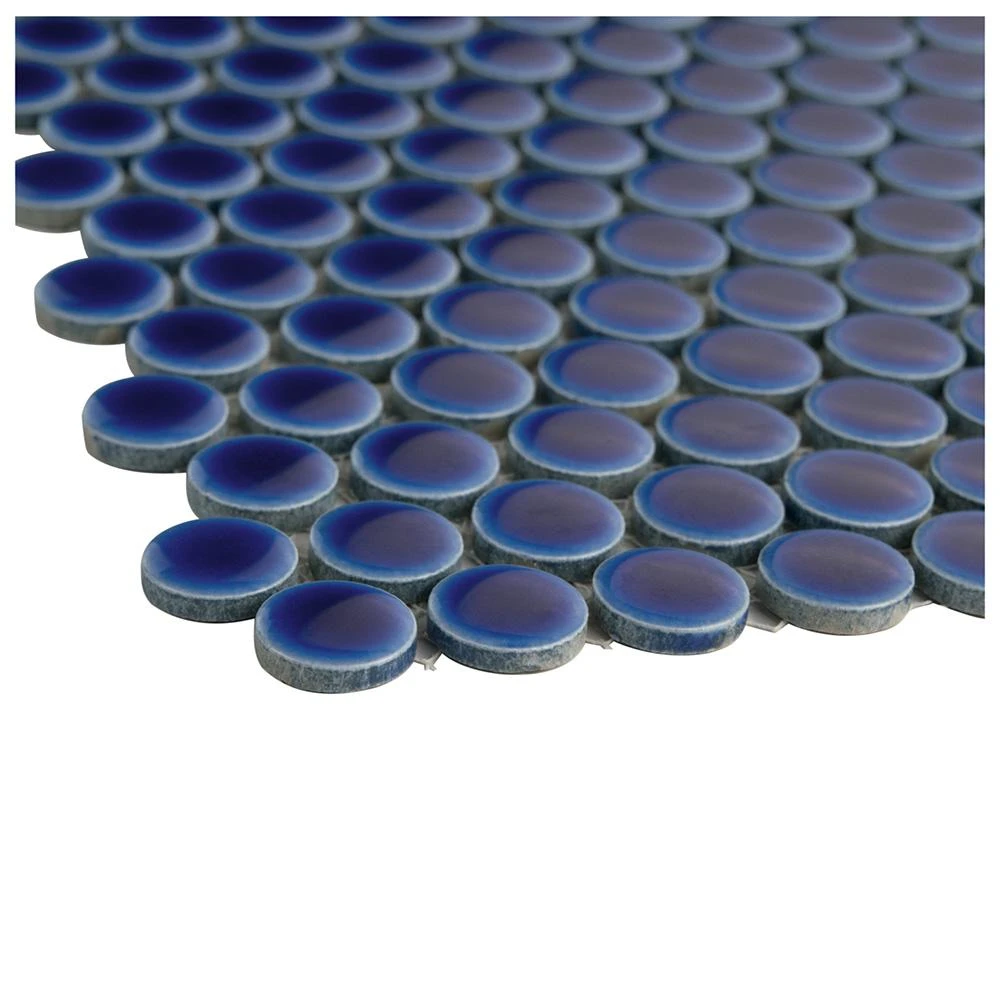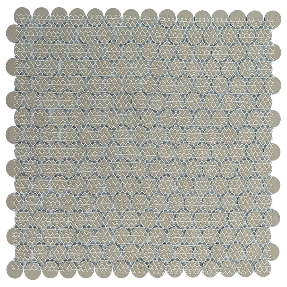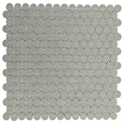 - 12 in. width x 12.63 in. length x 5 mm thick mesh-mounted mosaic. 0.8 in. W x 0.8 in. L penny round pieces