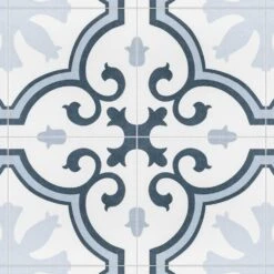 Drawing inspiration from artisan cement tiles, the Merola Tile Lacour Arctic Encaustic 9-3/4 in. x 9-3/4 in. Porcelain Floor and Wall Tile is a gorgeous tribute to encaustic design. With a recognizable European-inspired design in white and calming blues, the simplistic arcs frame the snowflake inspired patterns that create continuity throughout the installation. Set on a white base glaze, the contrasting design features a weathered, speckled look, replicating the beauty of its cement muse. The floral, geometric pattern blends into virtually any design theme, making this an exceptional product for modern installations and historic renovations. Offering a high durability Rating and dense porcelain body, this tile is an excellent choice for most interior and exterior installations, including showers, kitchens and backsplashes. Tile is the better choice for your space. This tile is made from natural ingredients, making it a healthy choice as it is free from allergens, VOCs, formaldehyde and PVC.