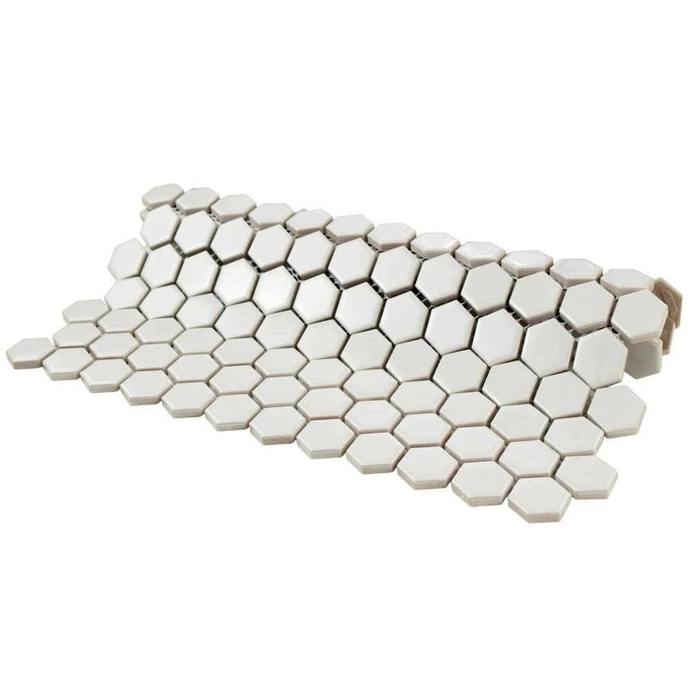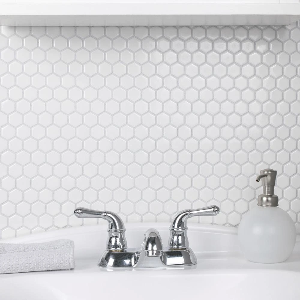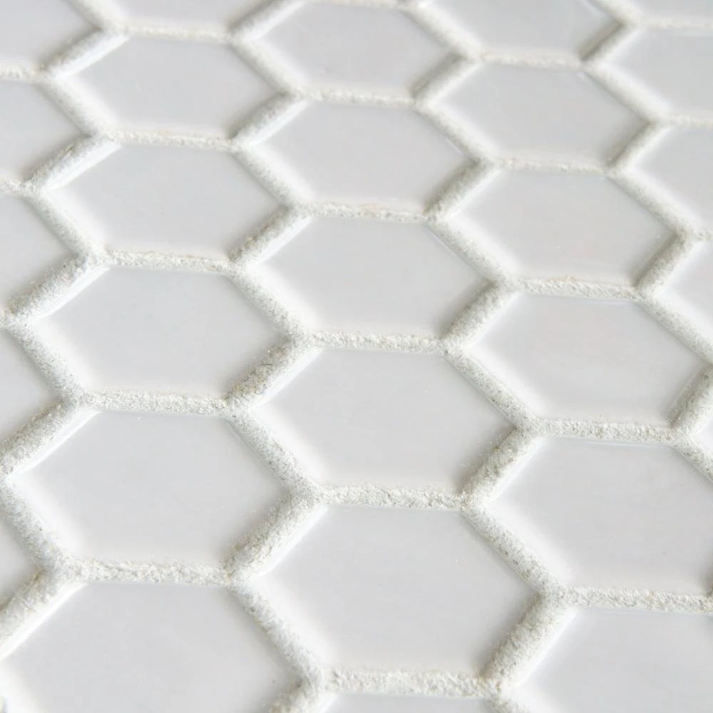 Offering a classic look, the Merola Tile Metro Hex Glossy White 10-1/4 in. x 11-3/4 in. x 5 mm Porcelain Mosaic Tile is reminiscent of Victorian-era tile and features a smooth, high-gloss finish for a clean, stylish look. Ideal for any setting, whether modern construction or historical renovations, these tiles are easy to clean and durable for a long-lasting use. Suitable for heavy-duty residential and most commercial and even offer frost resistance for some exterior work. If pairing with other products in our Metro Hex series, please consider that all formats and thicknesses may not be the same.