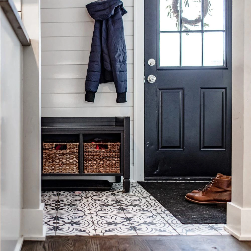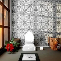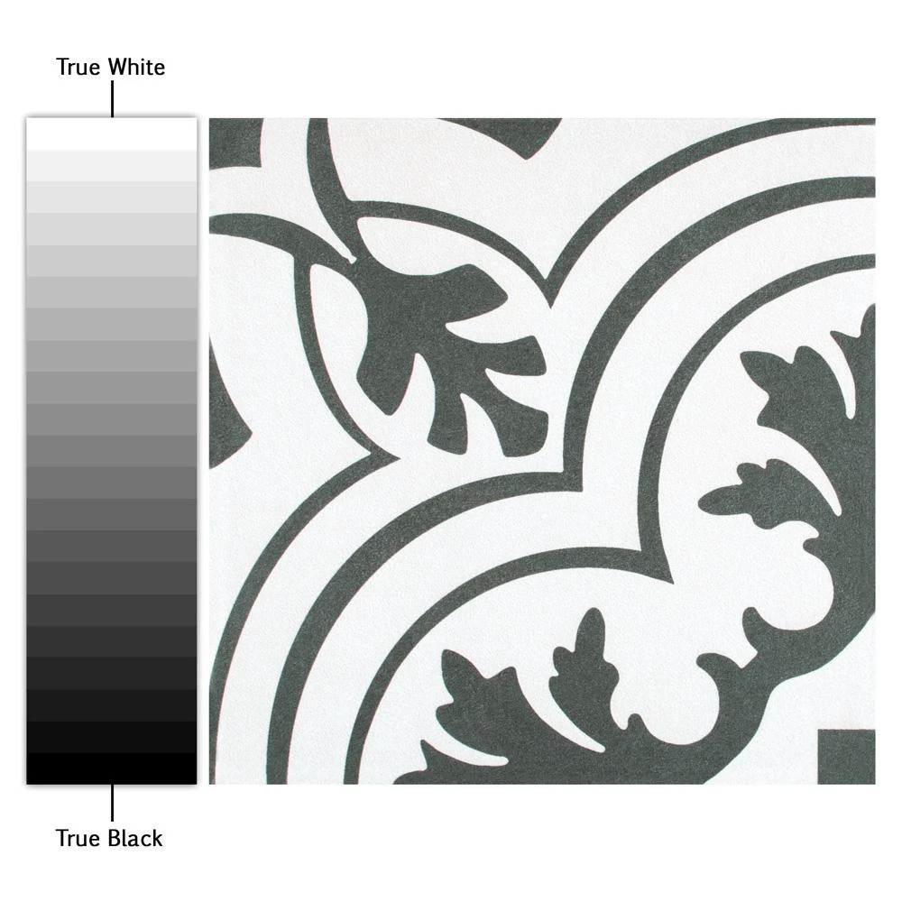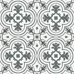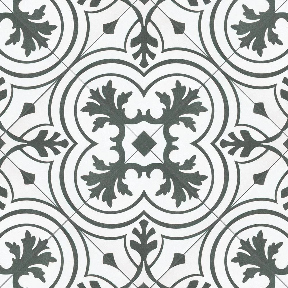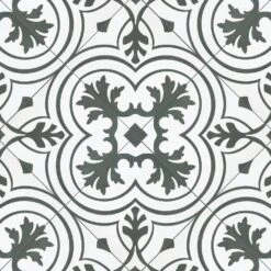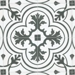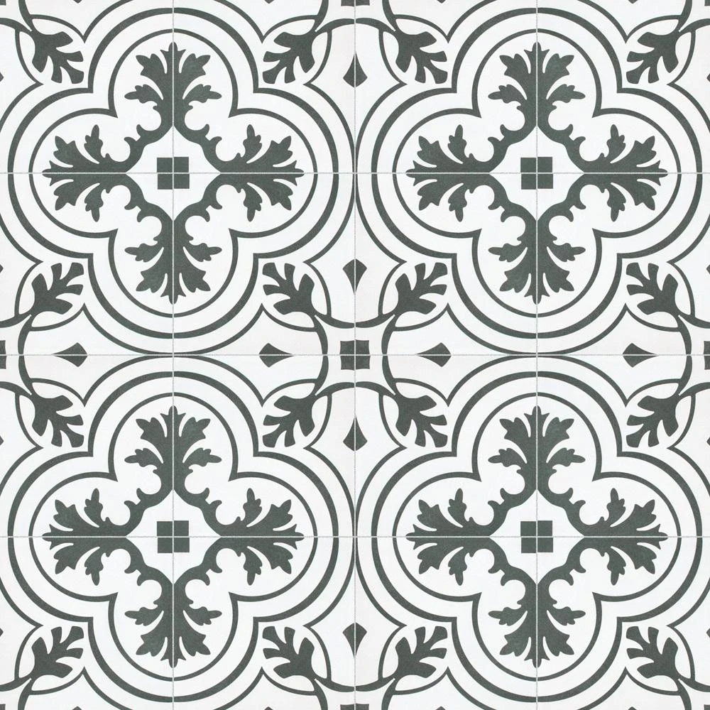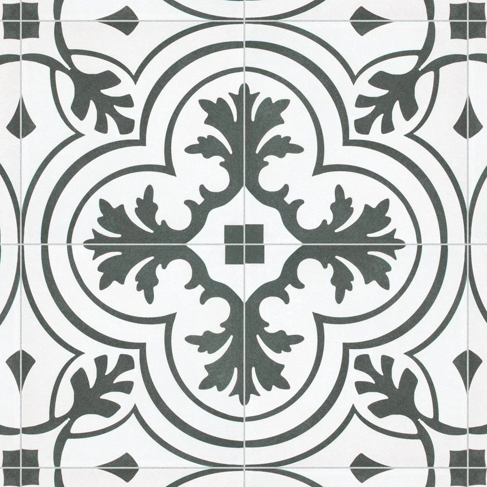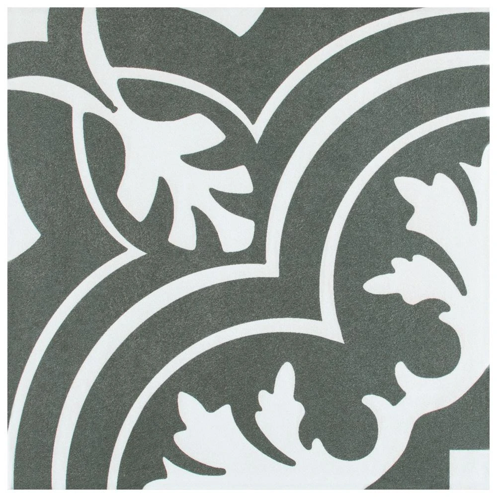 The Merola Tile Twenties Vintage Encaustic 7-3/4 in. x 7-3/4 in. Ceramic Floor and Wall Tile was inspired by artisan cement tiles. The medium-sheen glaze features a vintage floral-inspired pattern in hues of deep charcoal gray on a white background. This tile is perfect for any setting, traditional enough for historical renovations or modern enough for new construction. Use this durable tile with the rest of the geometric patterned Twenties series or as a lively accent for any application to your indoor or outdoor floors and walls.