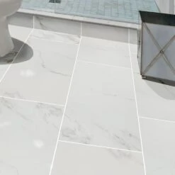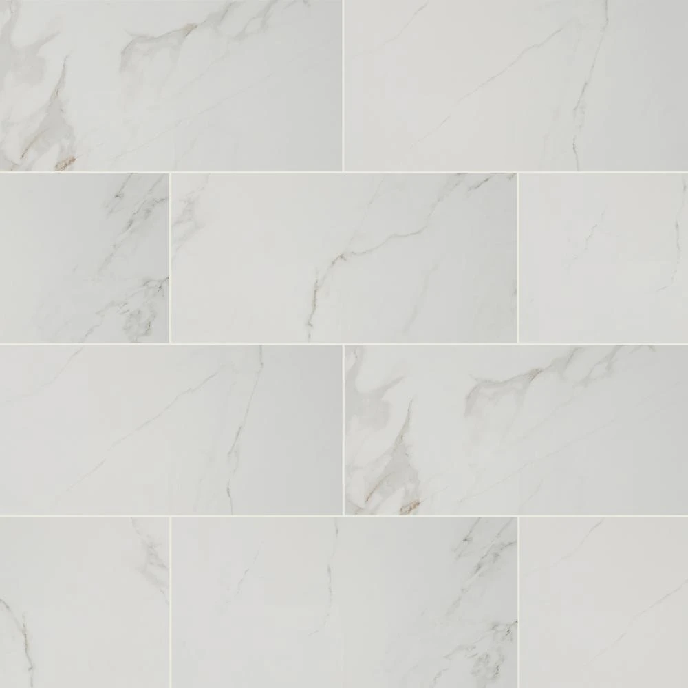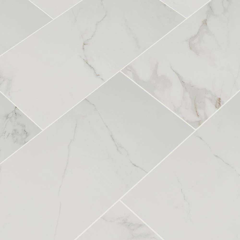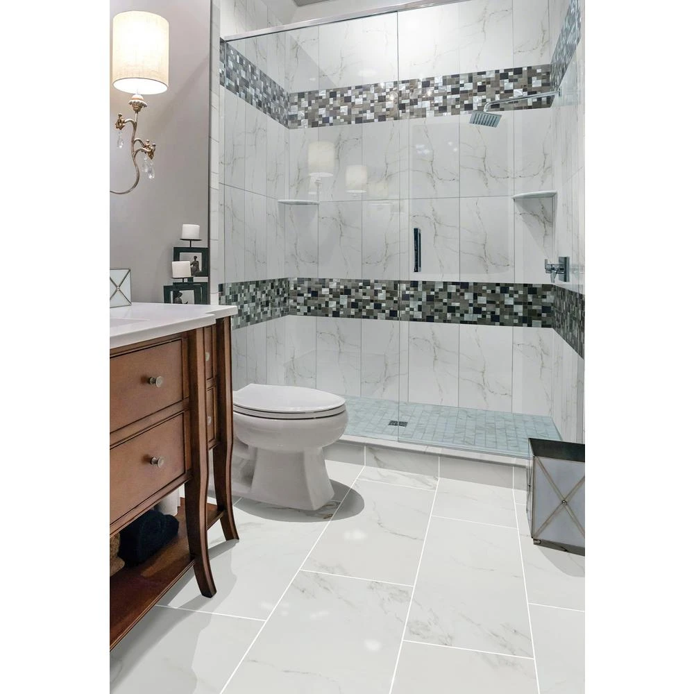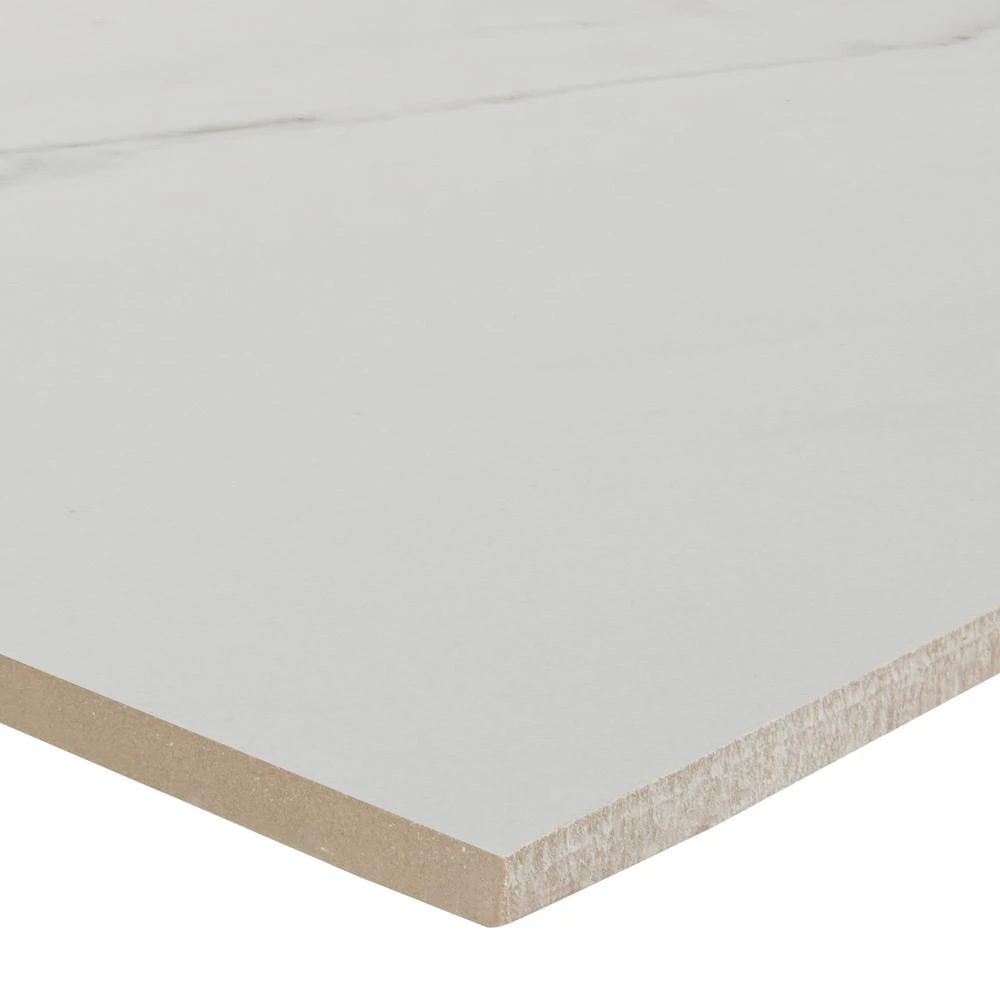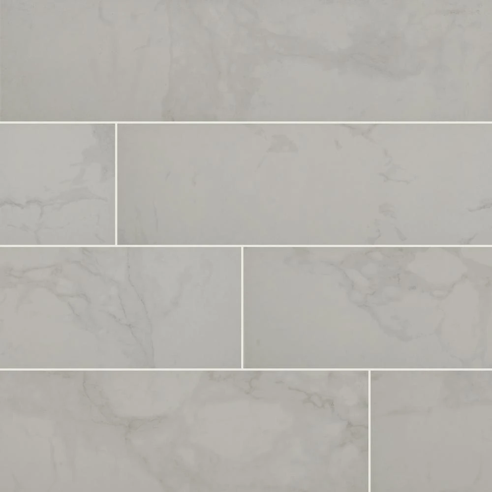 Incorporate a touch of style into your space with the Home Decorators Collection Carrara Polished Porcelain Floor and Wall Tile. A perfect complement to any contemporary aesthetic, this elegant, white rectangular tile blends the look of natural stone with porcelain durability and a high-sheen polished surface to help brighten your decor. Suitable for medium-duty commercial or residential floors and walls with minimum maintenance, the tile incorporates a distinctive personal signature in a wide variety of designs. Use matching trim tile or a combination of field tile to achieve the design that best suits your space and preferences.