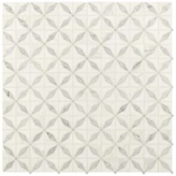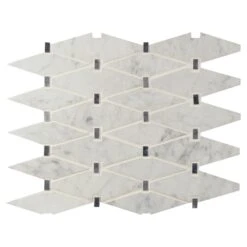 Add a splash of sophistication to your decor with Marbella Diamond Polished Marble Mosaic Wall Tile. It features unique styled pieces of polished white Italian marble, lending an upscale look and contemporary flair to any interior expanse. The high-sheen, smooth-finished genuine stone chips are perfectly arranged on a 12 in. x 12 in. mesh-backed mosaic. Suitable for residential and commercial use, this ornate tile has a distinct pattern that is certain to inject space-defining allure into any setting. Note: Inspect all tiles before installation. Natural stone products inherently lack uniformity and are subject to variation in color, shade, finish, etc. It is recommended to blend tiles from different boxes when installing. Natural stones may be characterized by dry seams and pits that are often filled. The filling can work its way out and it may be necessary to refill these voids as part of a normal maintenance procedure. All natural stone products should be sealed with a penetrating sealer.