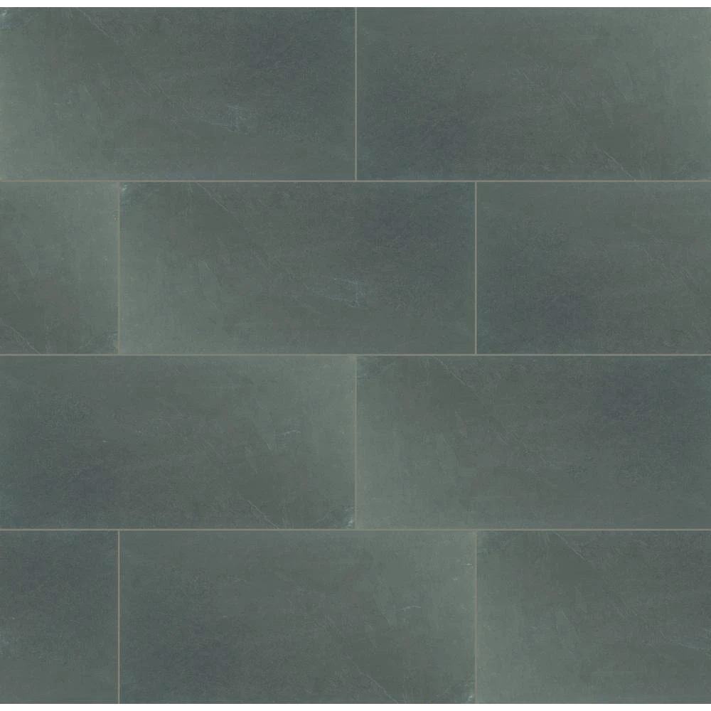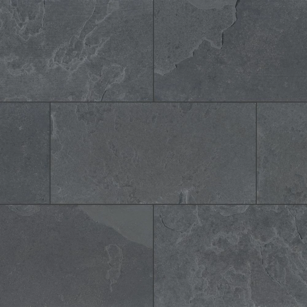 Add a splash of contemporary styling to your decor with this 12 in. x 24 in. Gauged Slate floor and wall tile. This first-quality tile makes a statement on floors, walls and countertops. Designed with a natural, unglazed finish, this flooring option features random variations in tone that create a stylish complement for a wide variety of design schemes. It is recommended for commercial applications but can be used residentially. Offering supreme style and strength, the skid-resistant tile absorbs less than 0.5% of water, making it a perfect choice for indoor and some outdoor uses. The easy-to-maintain natural stone tile inherently lacks uniformity, varying in color, shade and finish. Included per case are 5-pieces. Note: Inspect all tiles before installation. Natural stone products inherently lack uniformity and are subject to variation in color, shade, finish etc. It is recommended to blend tiles from different boxes when installing. Natural stones may be characterized by dry seams and pits that are often filled. The filling can work its way out and it may be necessary to refill these voids as part of a normal maintenance procedure. All natural stone products should be sealed with a penetrating sealer.