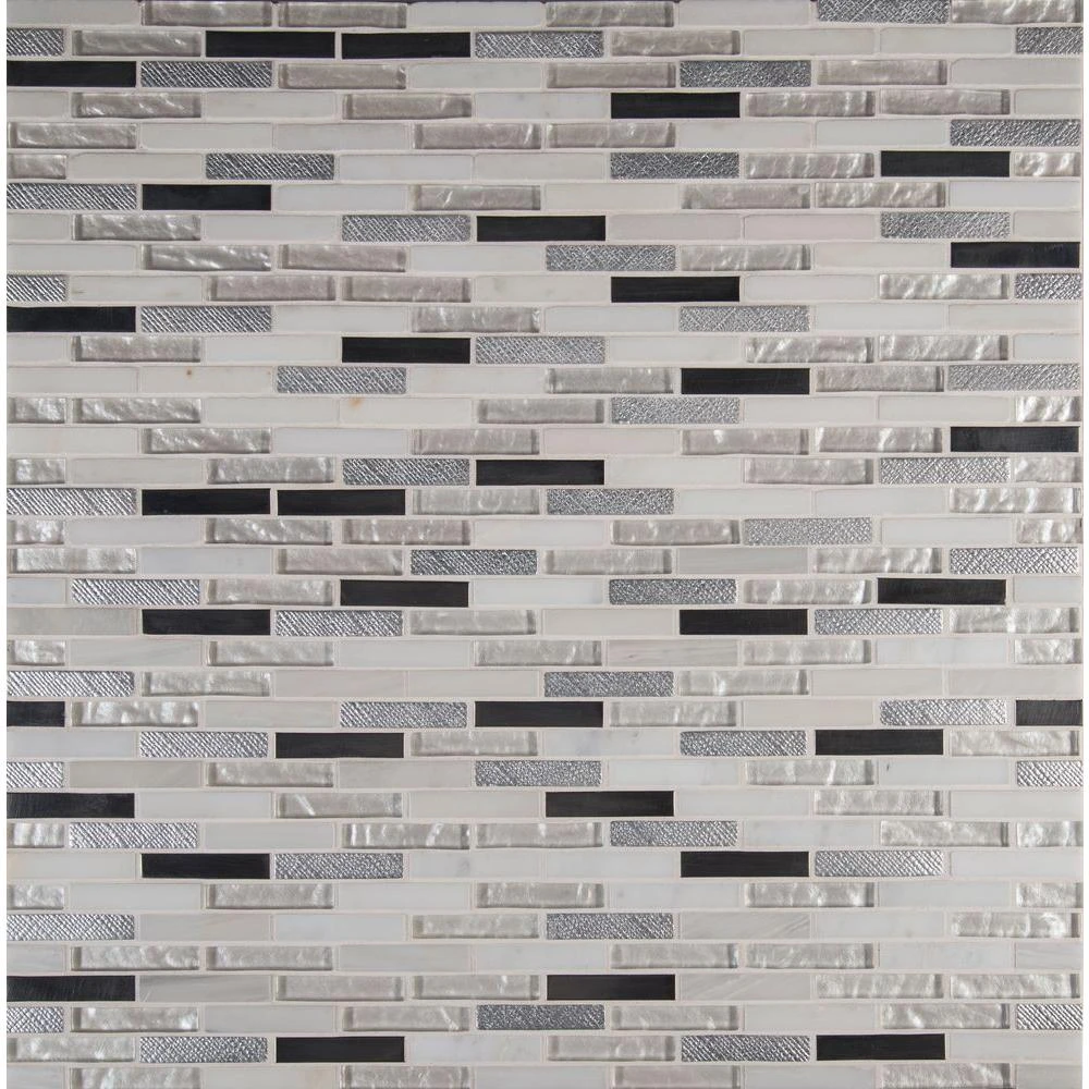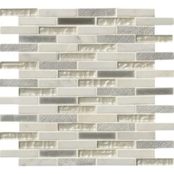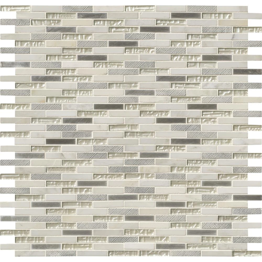 Made from a high quality white stone tile, this Ocean Crest Brick Glass Metal Stone Mosaic Tile is the perfect contemporary addition to your home décor. Each tile is easy to install since they are mounted on a 12 in. x 12 in. mesh mosaic. The mixed-sheen, mixed-finished tiles are versatile enough to be used outside. Perfect for kitchens, backsplashes, bathrooms, showers and accent walls.