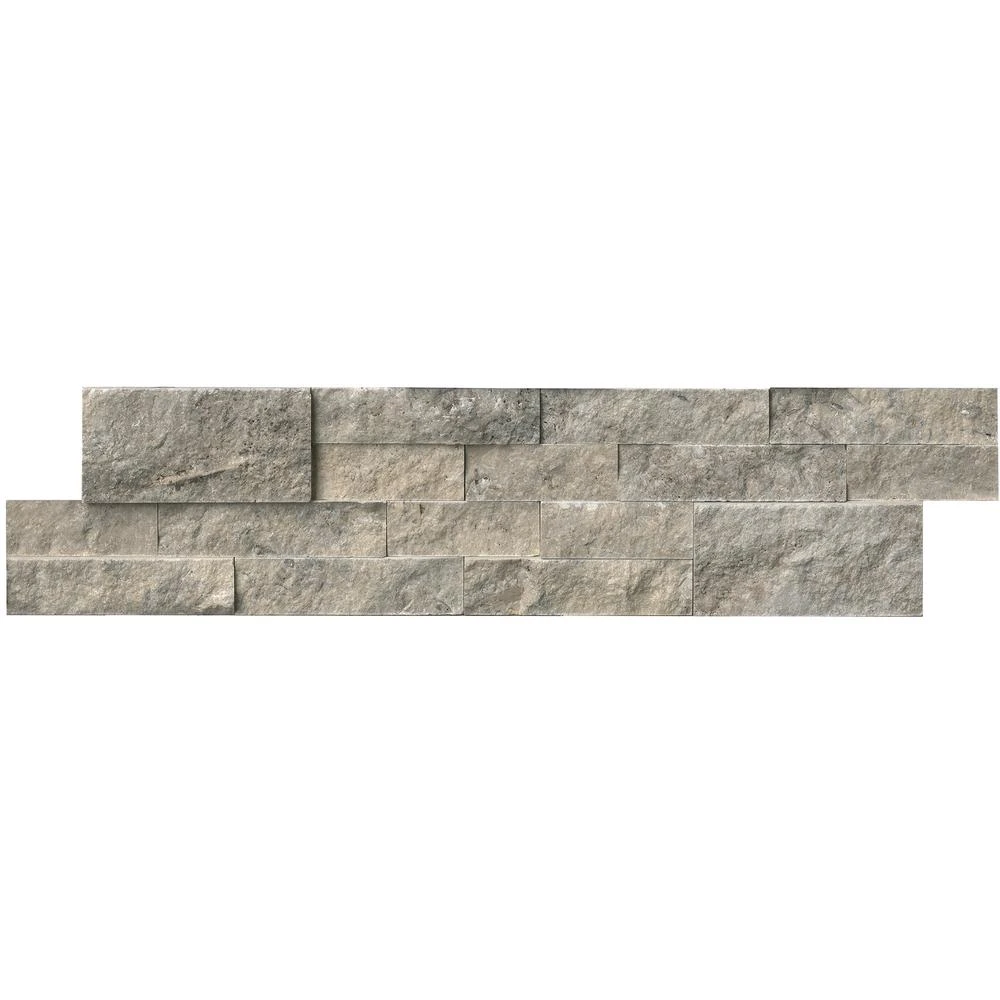 The MSI Trevi Gray Ledger Panel Natural Travertine Wall Tile is a natural stone travertine with a beautifully neutral blend of contemporary silver and gray tones. The tile features random strips of stacked stone glued together for ease of installation, and each piece is designed with an S-shaped end that helps interlock the pieces and enhance the naturally random appearance. This tile can easily be laid in a pattern or single layout and is suitable for both residential and commercial installations, indoors or out. Note: Please inspect all tiles before installation. Natural stone products inherently lack uniformity and are subject to variation in color, shade, finish, etc. It is recommended to blend tiles from different boxes when installing. Natural stones may be characterized by dry seams and pits that are often filled. The filling can work its way out and it may be necessary to refill these voids as part of a normal maintenance procedure. All natural stone products should be sealed with a penetrating sealer.