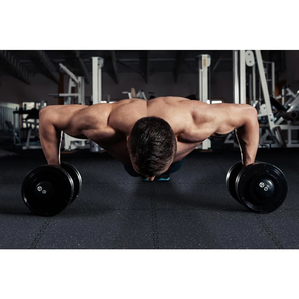 Norsk Shock Absorbent Gym Tiles feature a unique dual layered multi-purpose sport flooring solution. The top wear layer surface is made from durable co-polymer materials creating optimal exercise and fitness performance. The foam core is made from a durable high density co-polymer that provides cushion and support for weights and general exercise. These foam tiles are extremely durable and do not have the offensive odor found with recycled rubber products, and can be installed similar to other puzzle mats or foam floor tiles with a variety of applications. This set includes four mats and eight straight edge borders to provide a finished, uniformed look. Each interlocking mat is 0.70 in. thick and measures 25.2 in. (L) x 25.2 in. (W) for a total coverage of 17.64 sq. ft.
